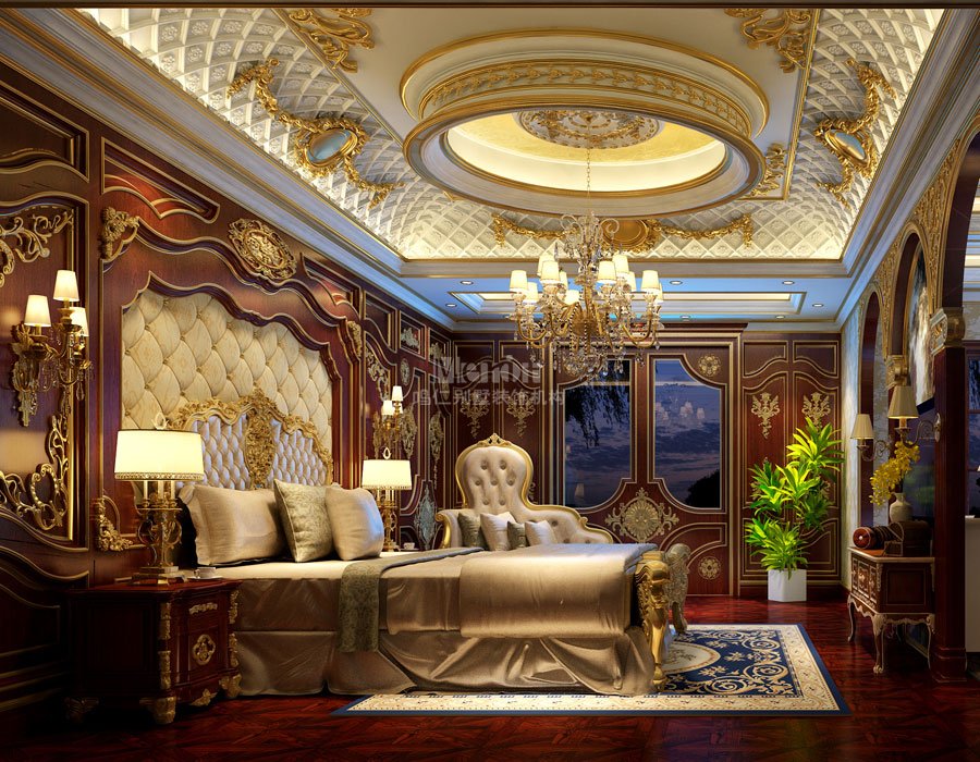 用华丽的装饰,浓烈的色彩,精美的造型来营造雍容华贵的装饰效果。大量雕刻与天顶画作为装饰,让整体更具综合感。墙面的高档壁纸与乳胶漆来衬托豪华。