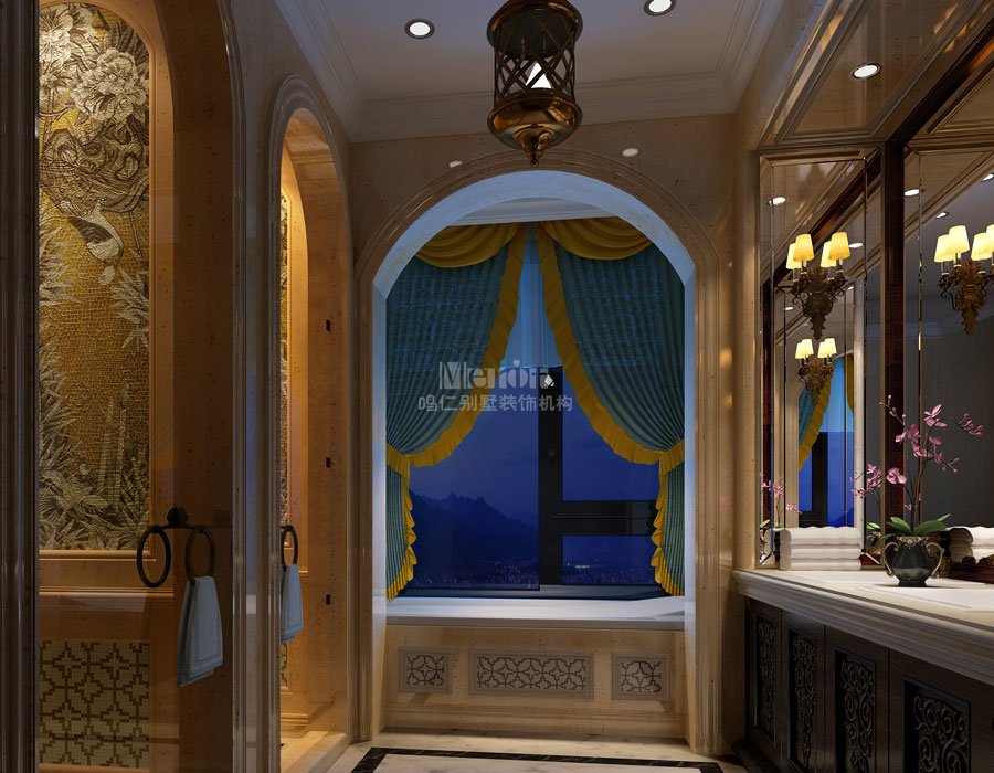 卫浴间采用干湿分离的格局,风格颇具异域风情。这里也成为了设计风格最为跳跃和融合的区域,给别墅家居生活蒙上了一层神秘的色彩。